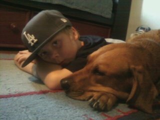 May loves our oldest & his wife. She often sets her head on my daughter-in-law’s feet, she loves all of our kids. And desperately wants to give kisses to our grand kids, but the littles are allergic so when they come over, out the dogs go.